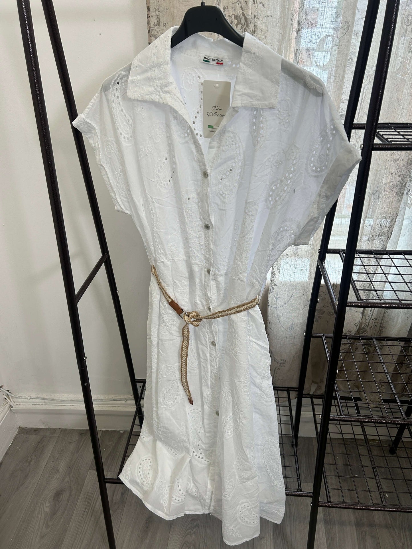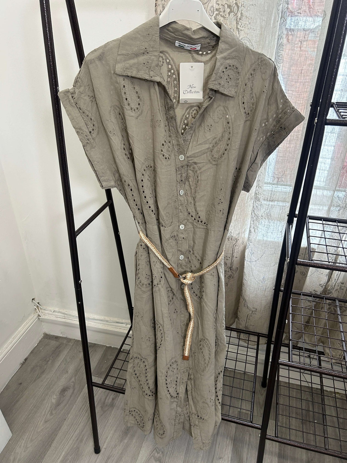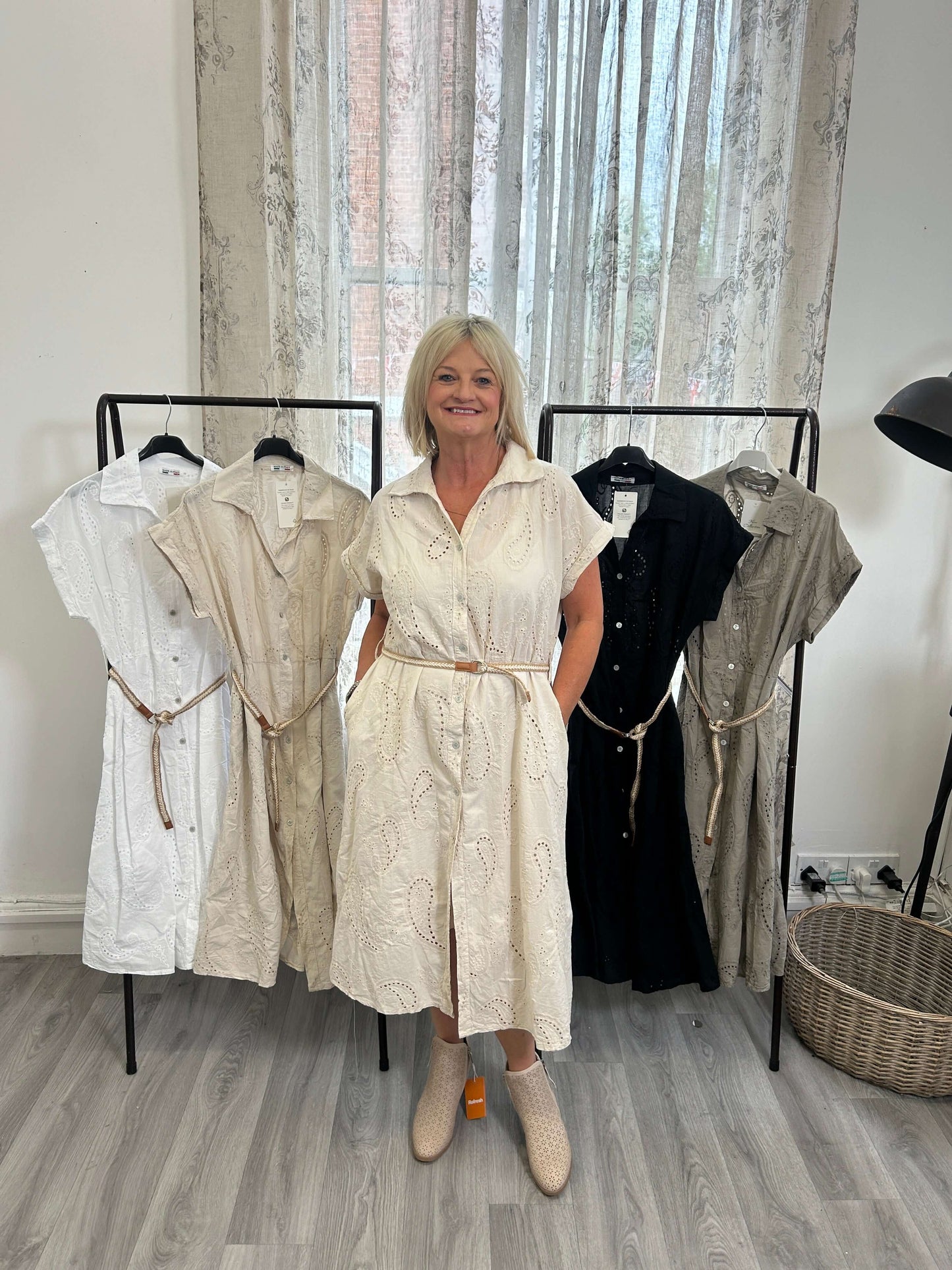 This Paisley Broderie Anglaise Midi Shirt Dress combines timeless elegance with practical design. Crafted from exquisite paisley broderie anglaise fabric, it features a flattering midi length and comes with a coordinating belt to define your silhouette. Thoughtfully designed with pockets, this dress offers both style and convenience for a refined, effortless look.