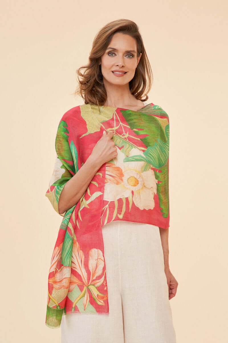 Powder Design 100% Linen Delicate Tropical Scarf - Dark Rose