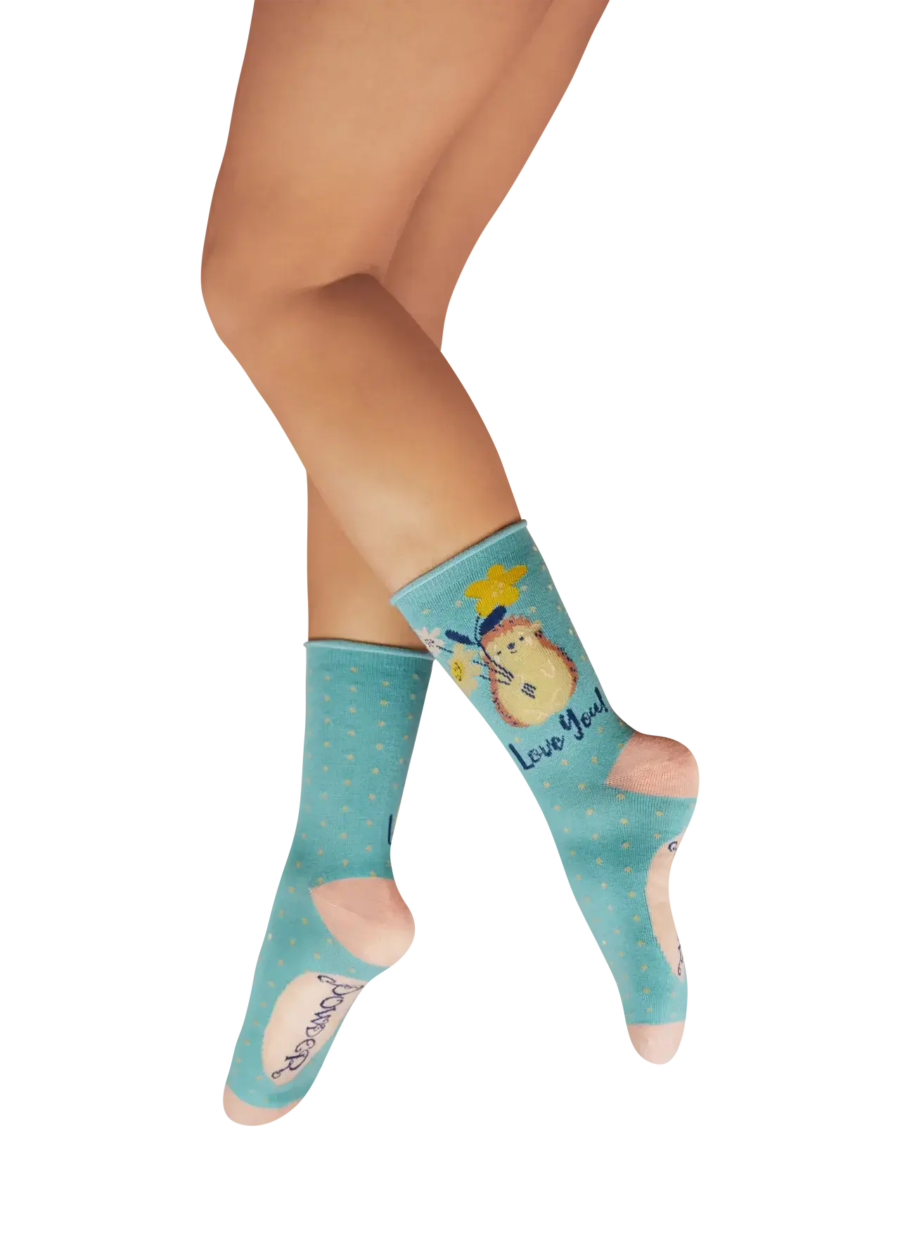 Powder Design Ladies' Ankle Socks - Hedgehog Sharing Love - Aqua