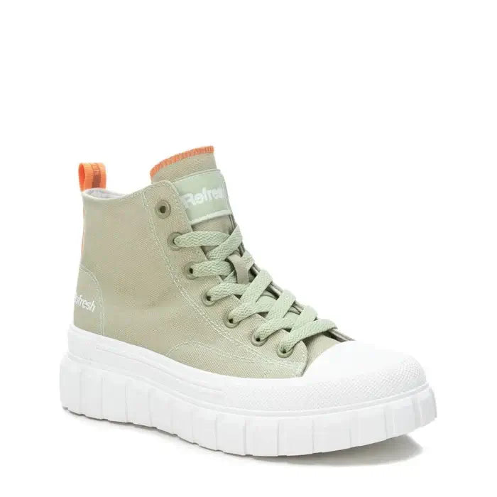 Elevate your sneaker game with Refresh Sage Chunky High Top Trainers. Made of sturdy and sustainable canvas, these sporty kicks feature a zip fastening and adjustable laces for a cool, edgy look. The non-slip rubber sole ensures you can take on any terrain, while PETA certification makes them a guilt-free choice.