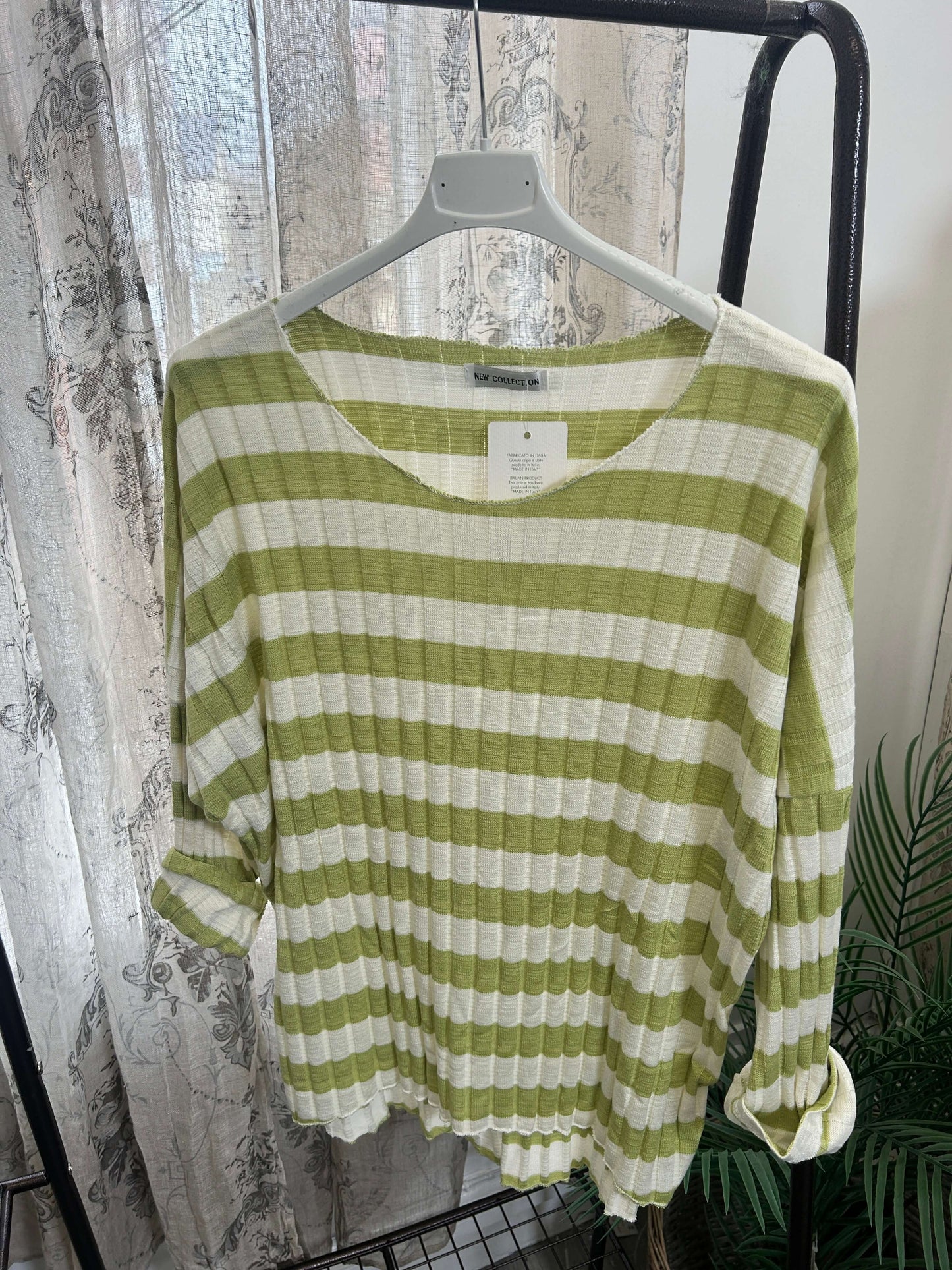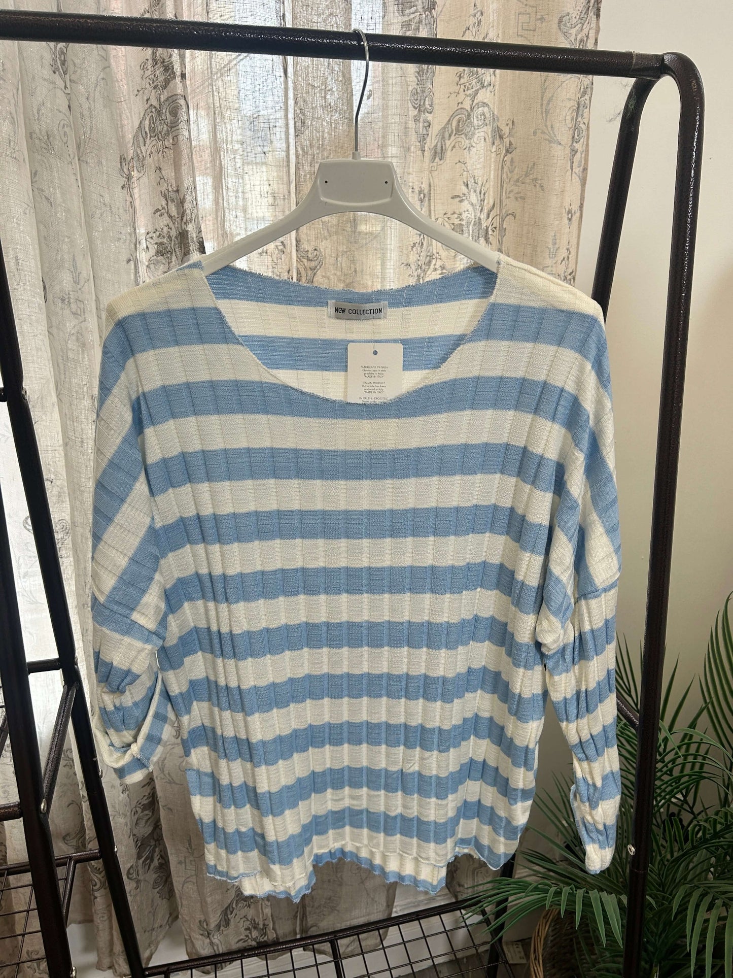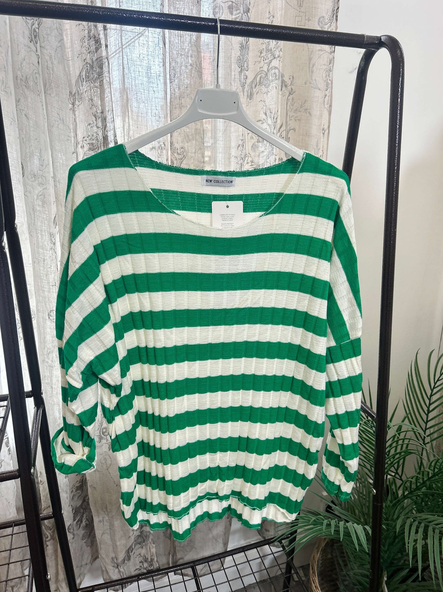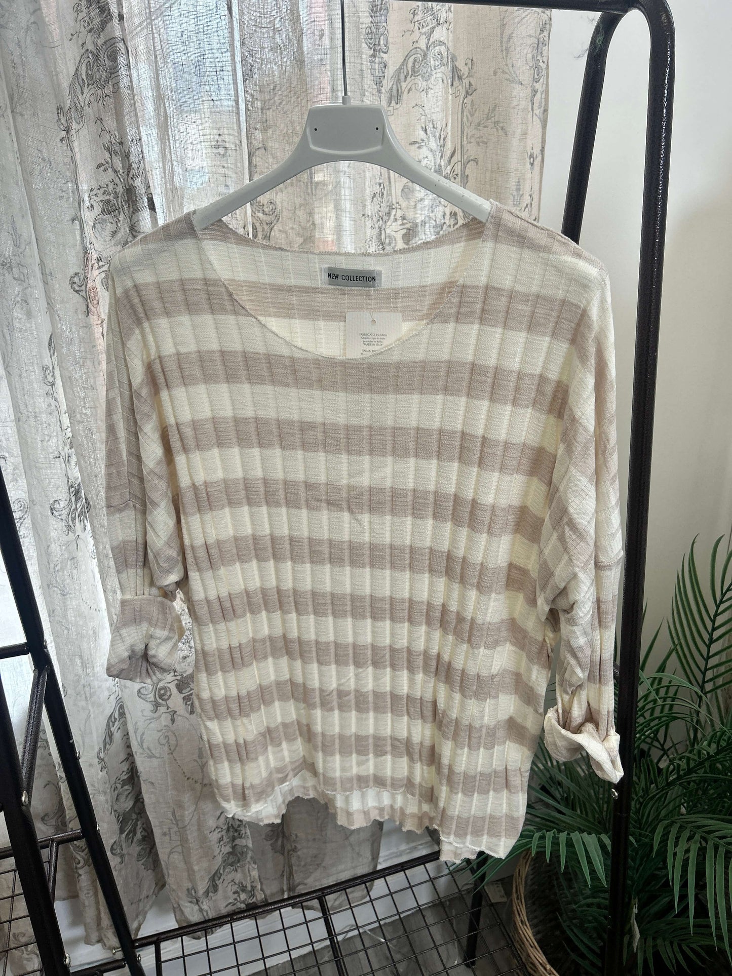 Stay cozy and stylish with our Ribbed Stripe Batwing Jumper! Made from super soft material, this jumper features a unique batwing style and eye-catching stripes. Perfect for a casual and comfortable look.