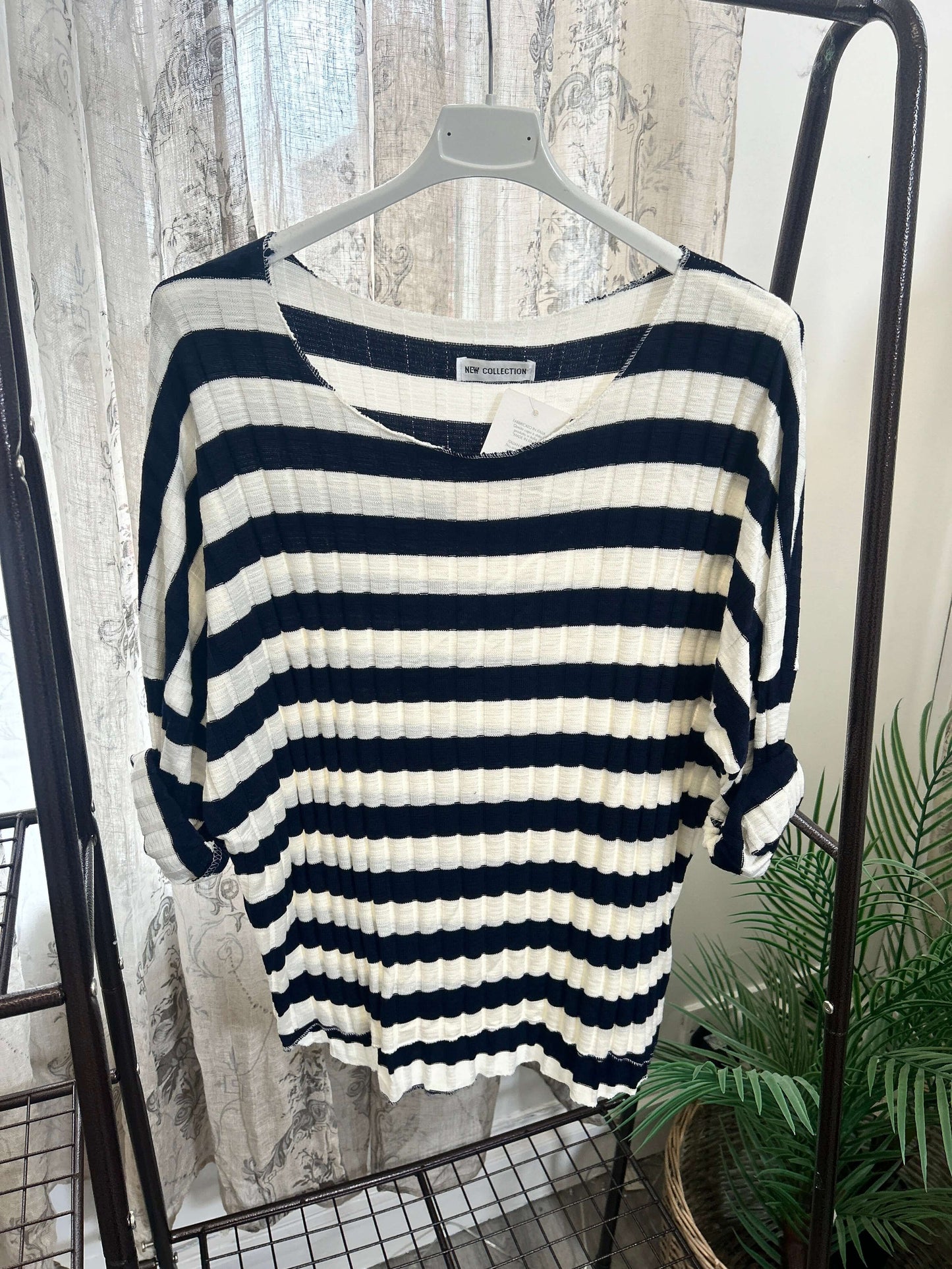 Ribbed Stripe Batwing Jumper