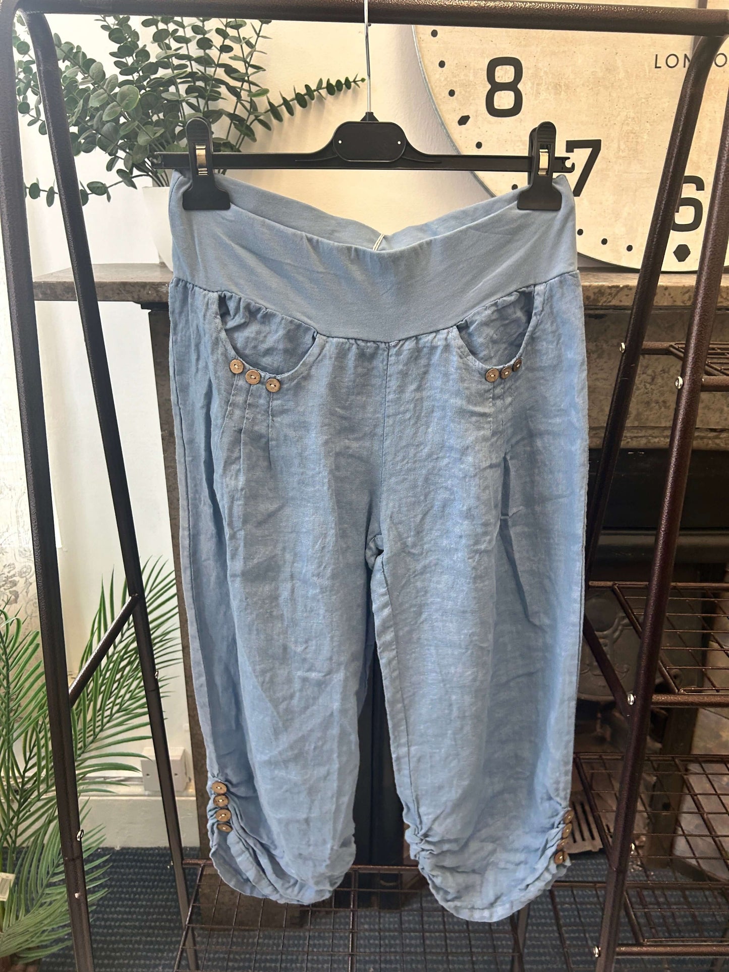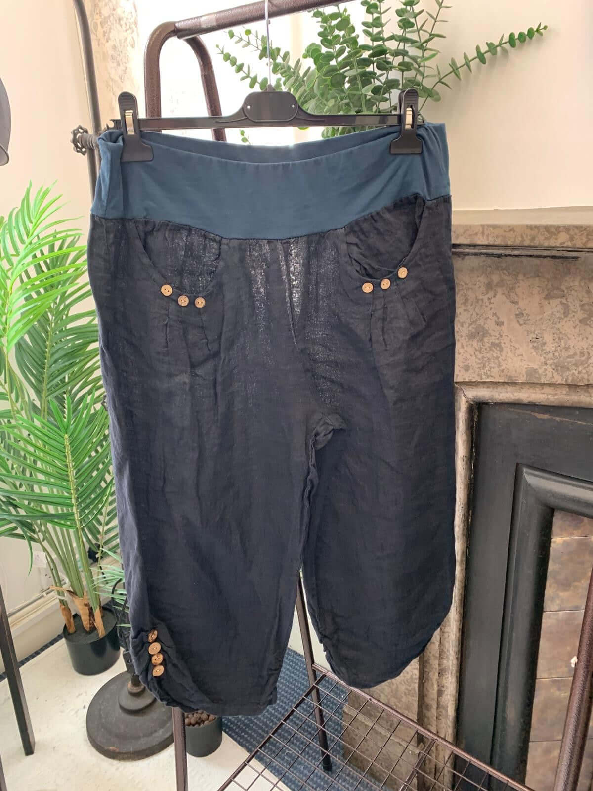 Introducing the Rosie Trouser - for those who want to rock the "smart-casual" look! These 3/4 Length Jersey Waist Trousers not only have cute button detailing and two pockets making them a versatile and comfortable addition to any wardrobe.