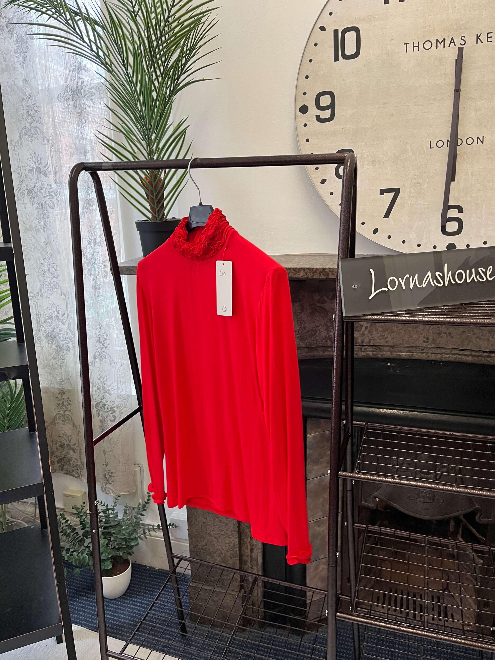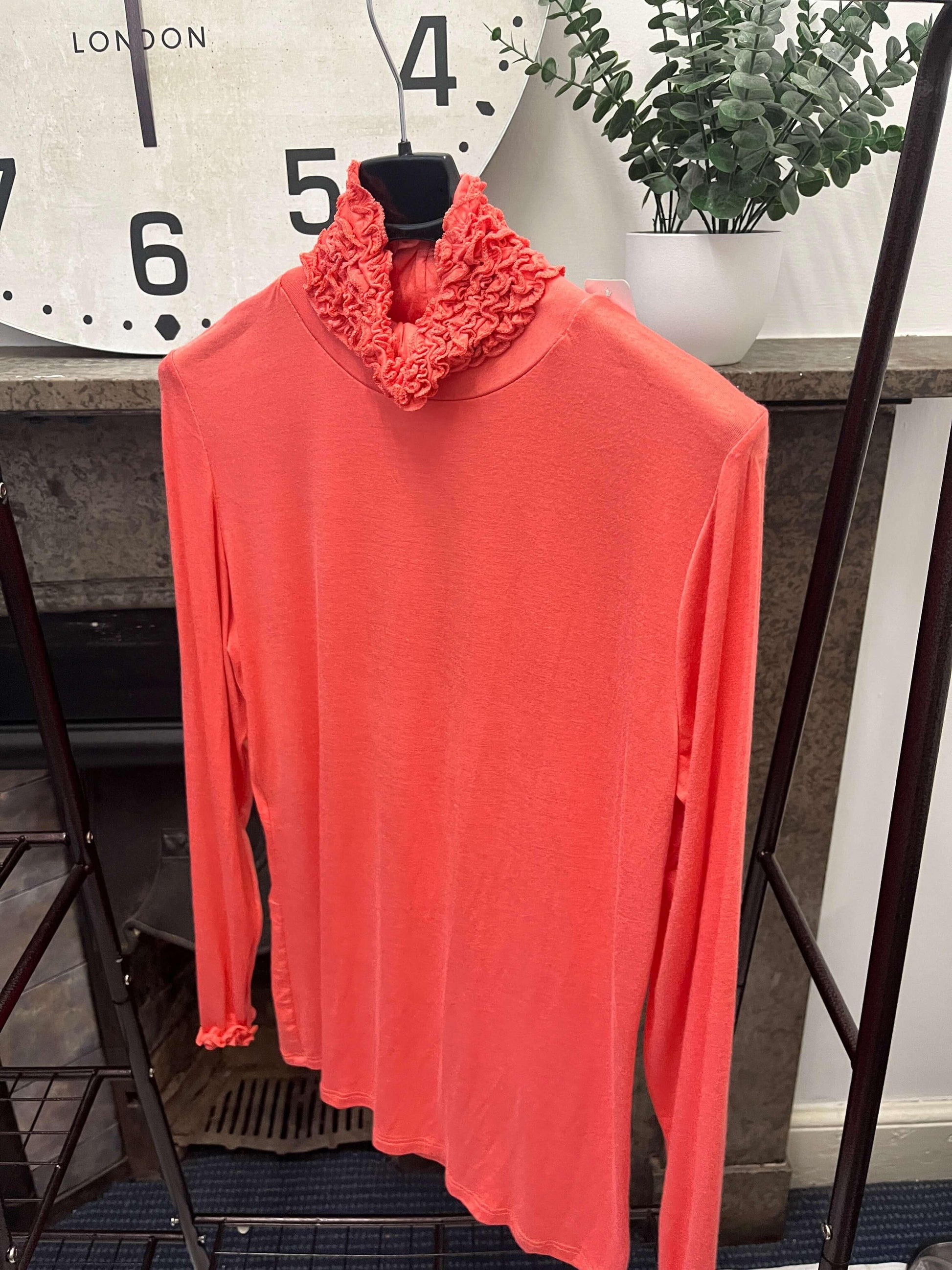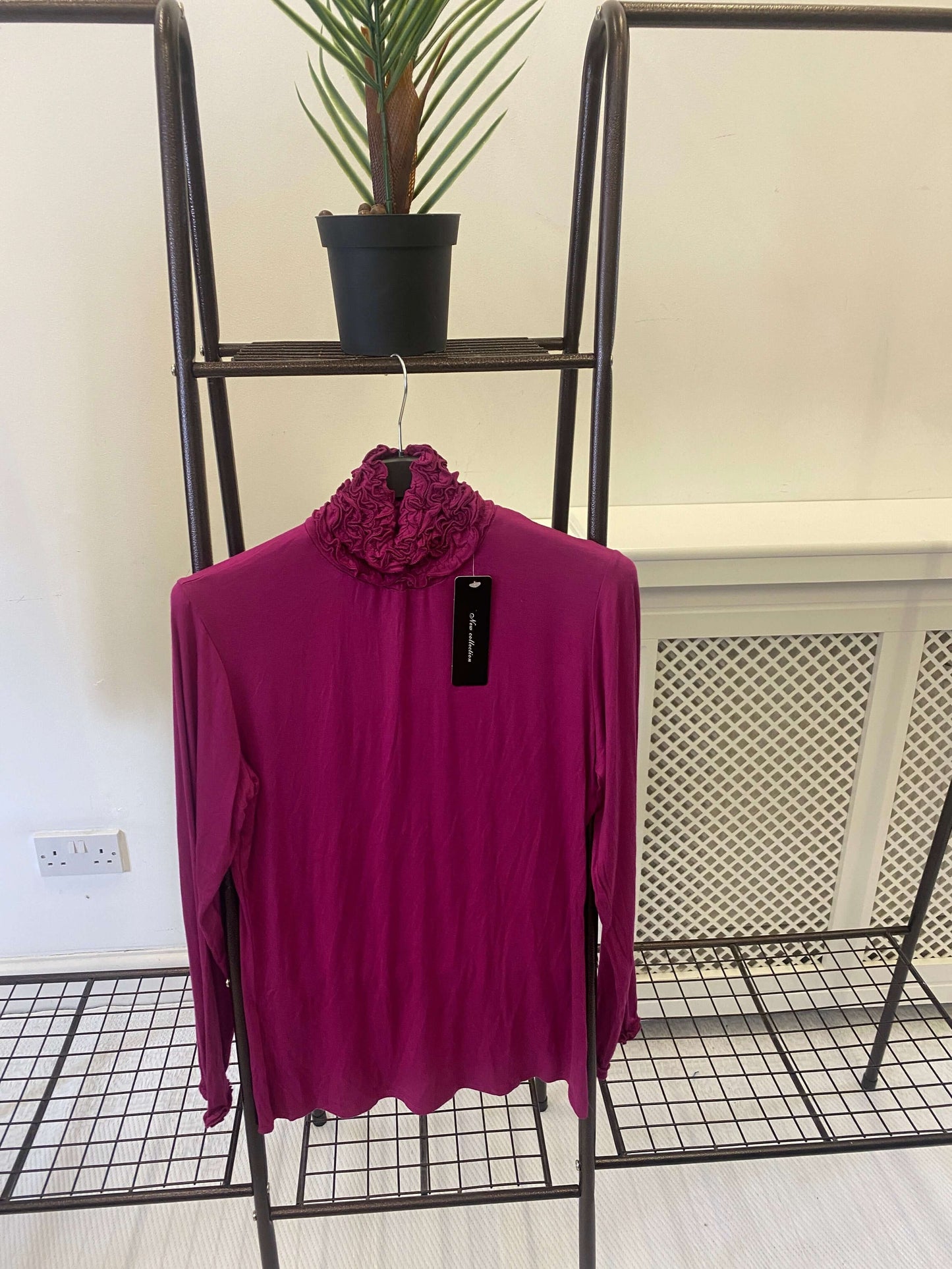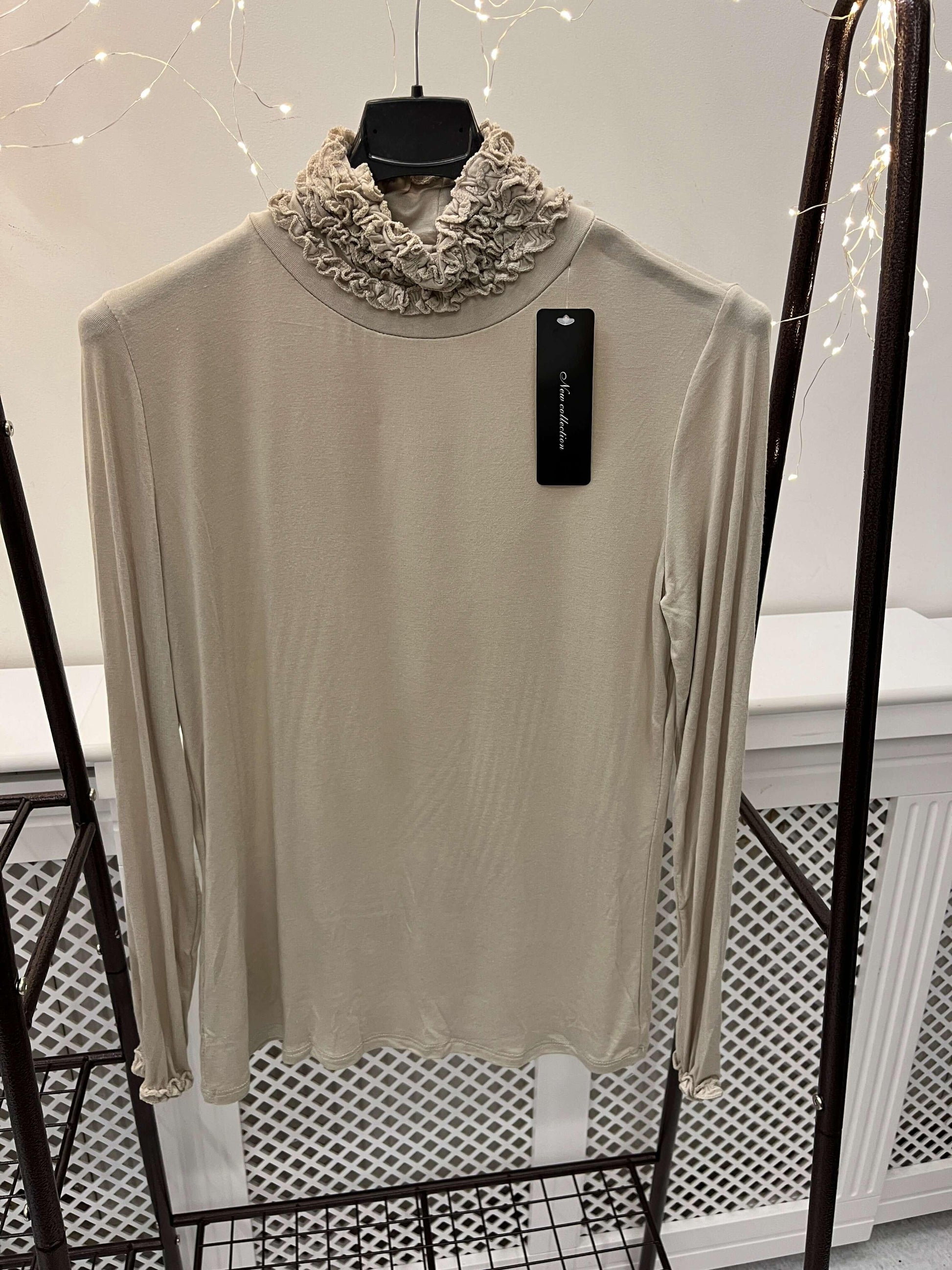 Ladies Ruffle Polo Neck Long Sleeve TopFits uk 8-16