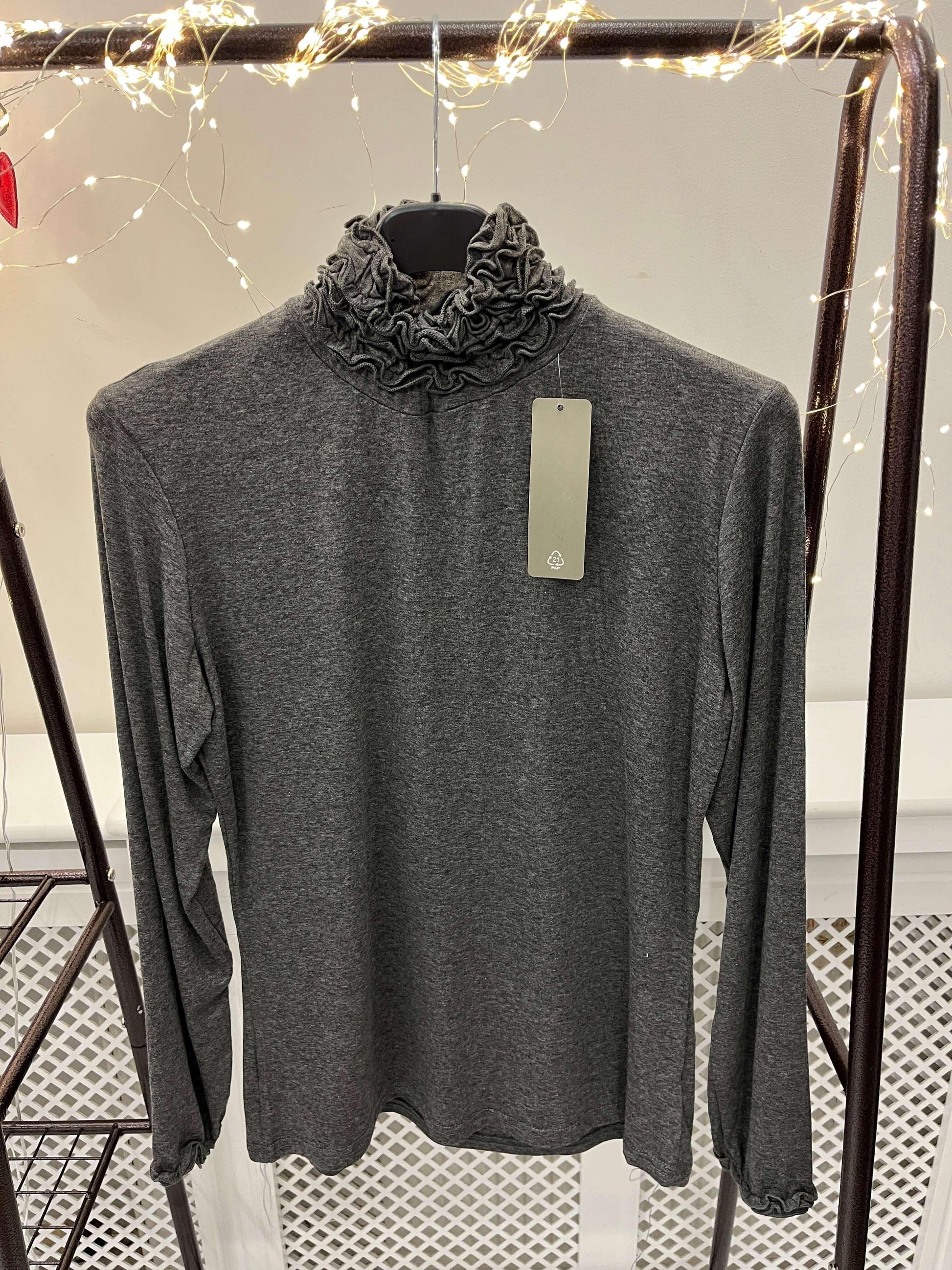 Introducing the Ruffle Polo Neck Long Sleeve Top - it's sure to ruffle your feathers! This unique top features a polo neck design with added ruffle detail, perfect for adding a touch of 'ruff' to your wardrobe. With long sleeves and a figure-flattering design, you'll sure to make a statement, no matter the occasion. Have a 'ruffing' good time!