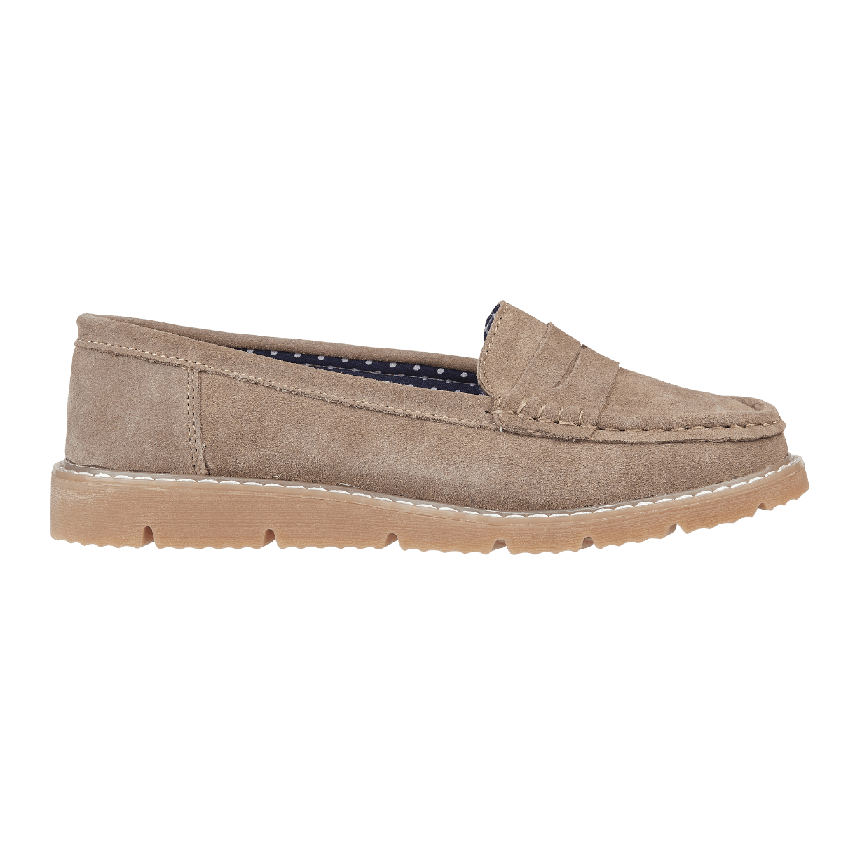 Step up your shoe game with our Shore Real Leather Suede Loafer! Crafted with genuine suede, these loafers feature a playful polka dot lining and a chunky unit for added style and comfort. Perfect for any occasion, these loafers are a must-have for any fashion-forward woman. (No more boring shoes!)