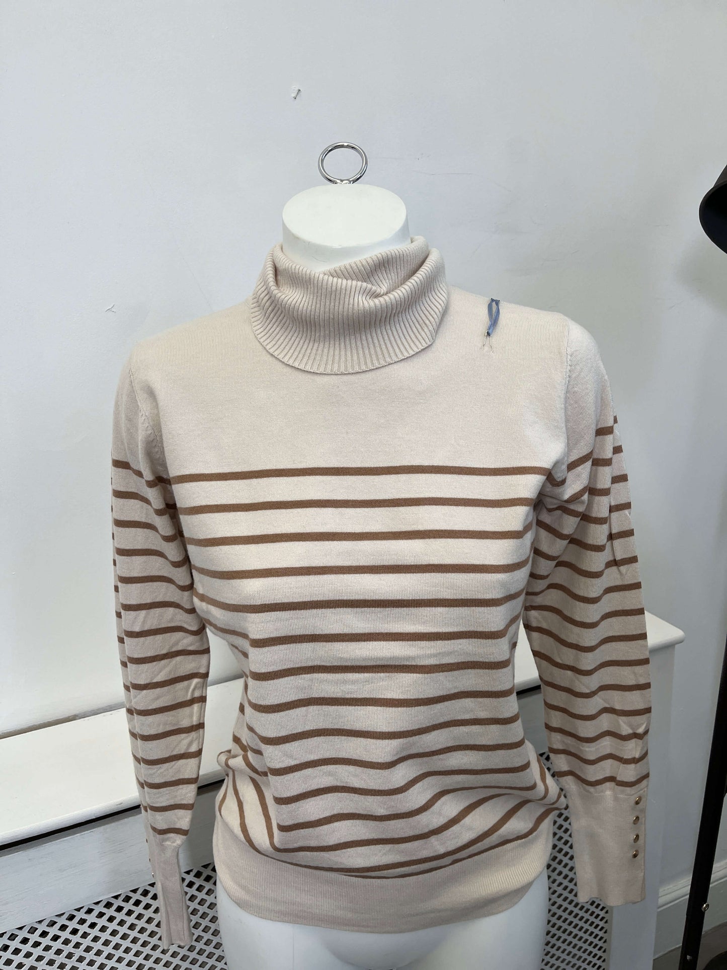 Stripe Neat Fit Ladies Polo Neck Jumper