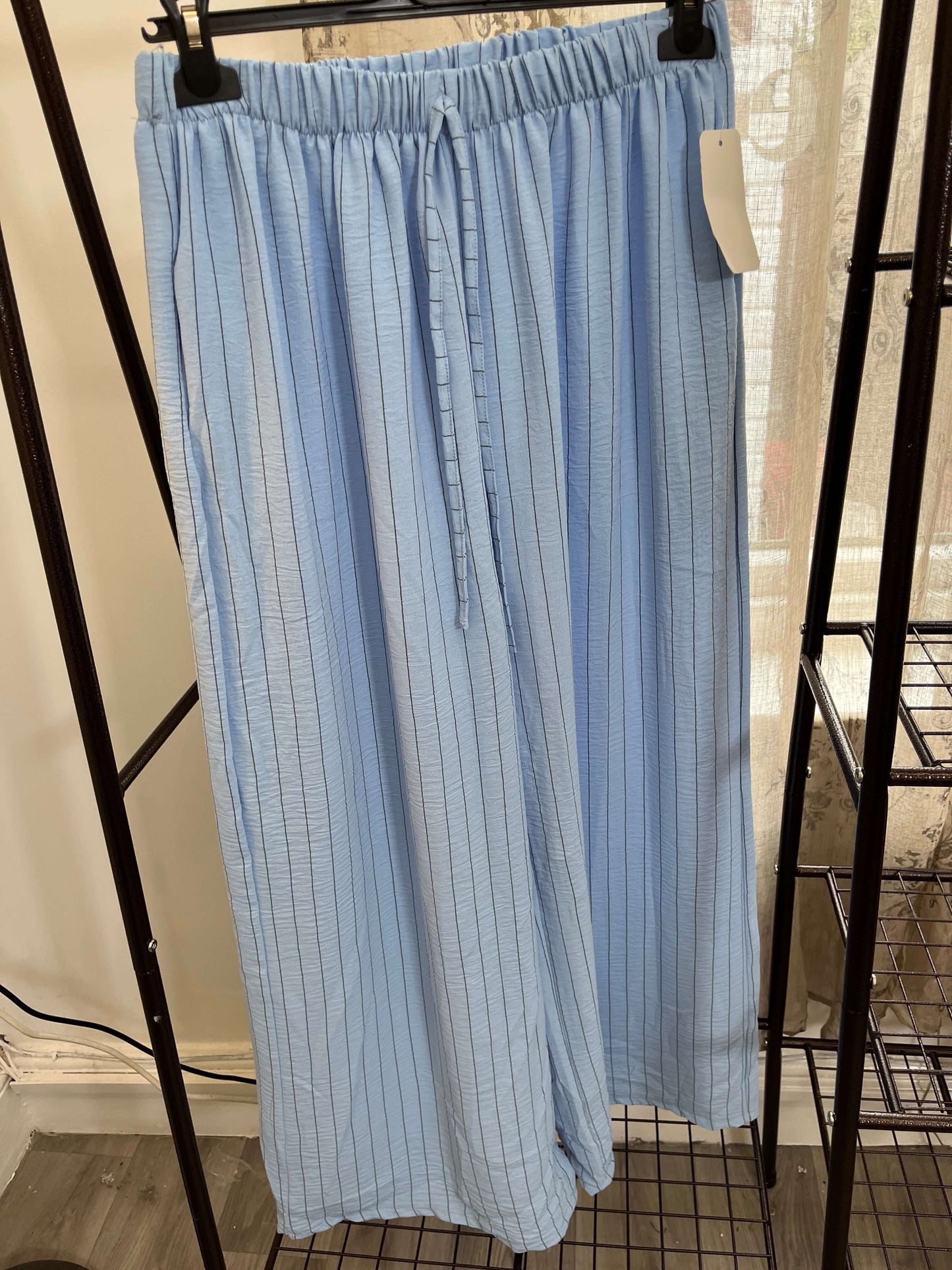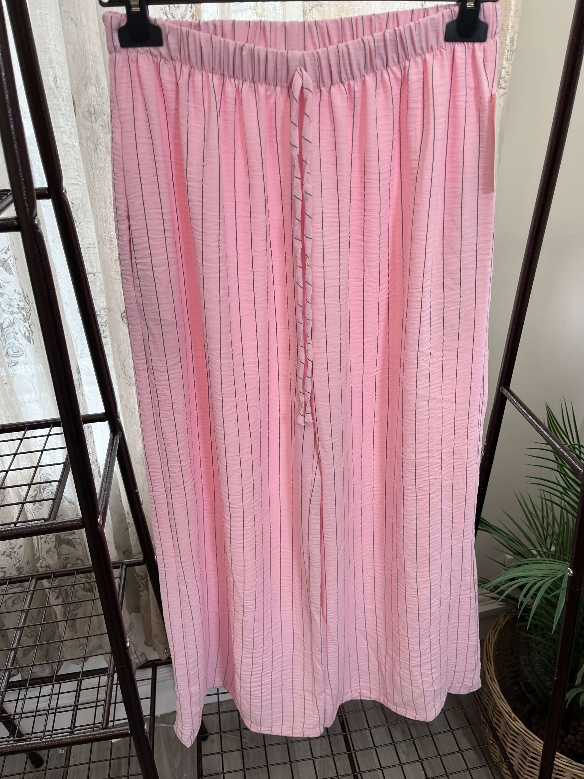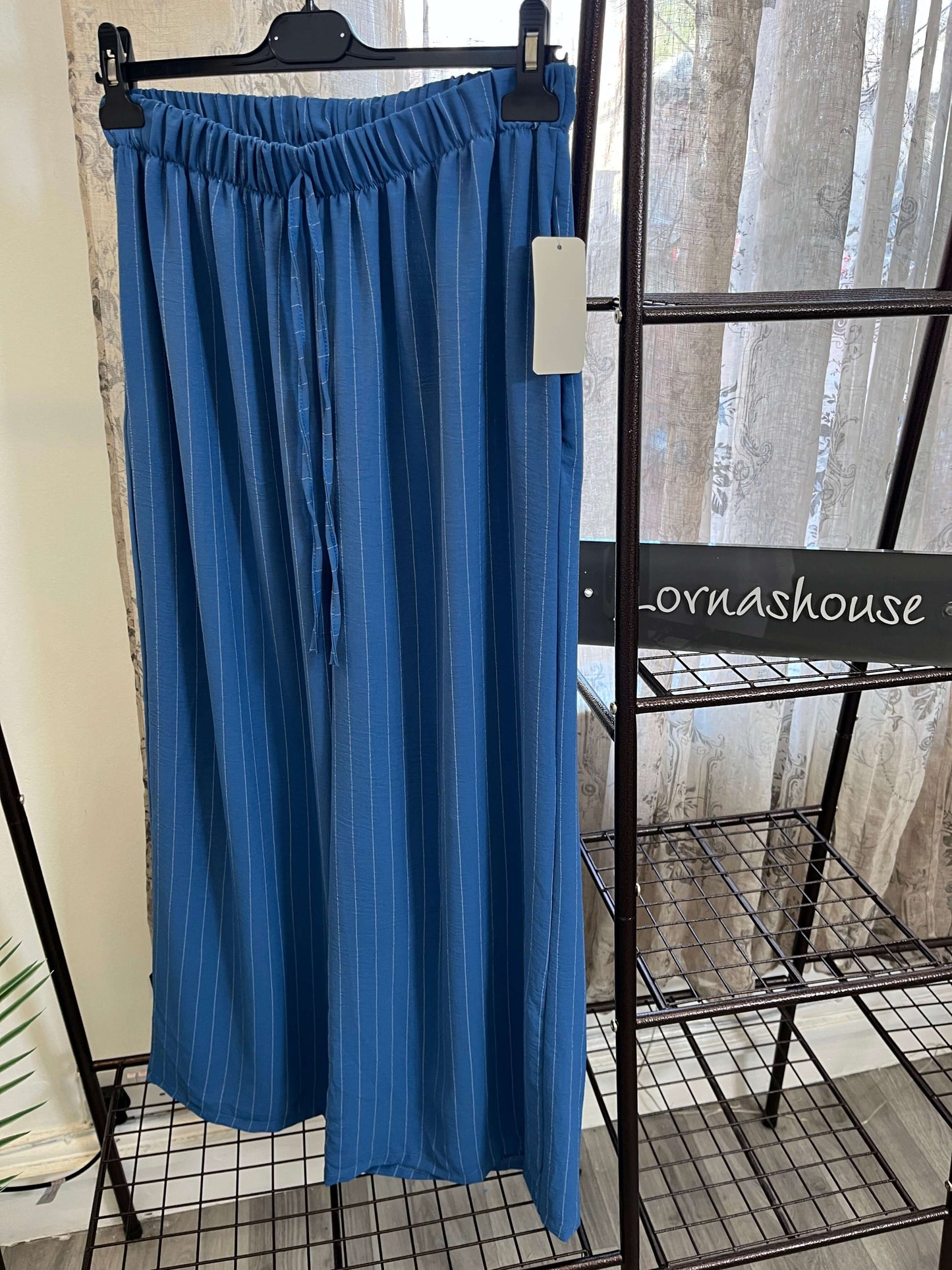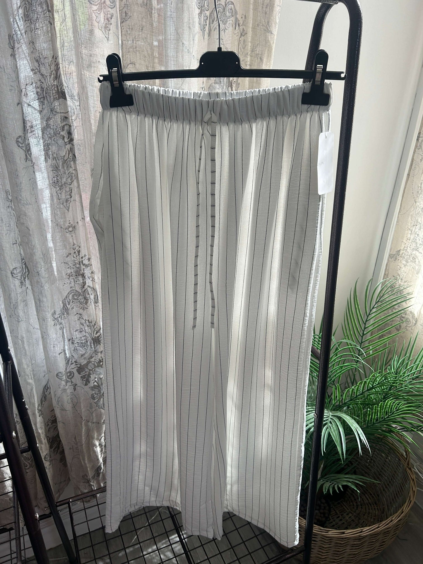These Striped Elegant Wide Leg Trousers feature a timeless stripe pattern and are made with lightweight fabric, ensuring both style and comfort. Perfect for any occasion, these trousers add a touch of elegance to any outfit. Expertly crafted for a sophisticated look.