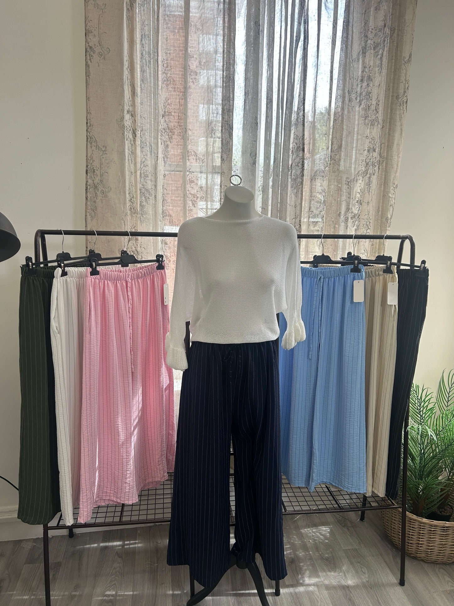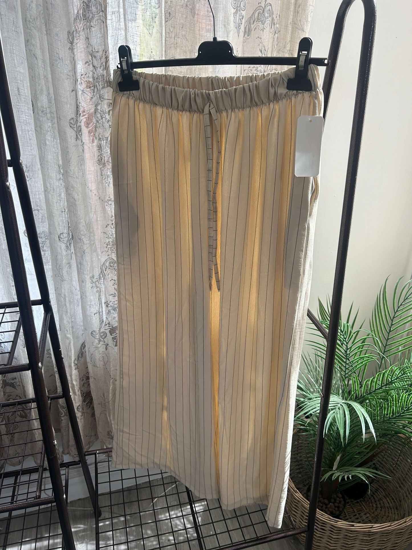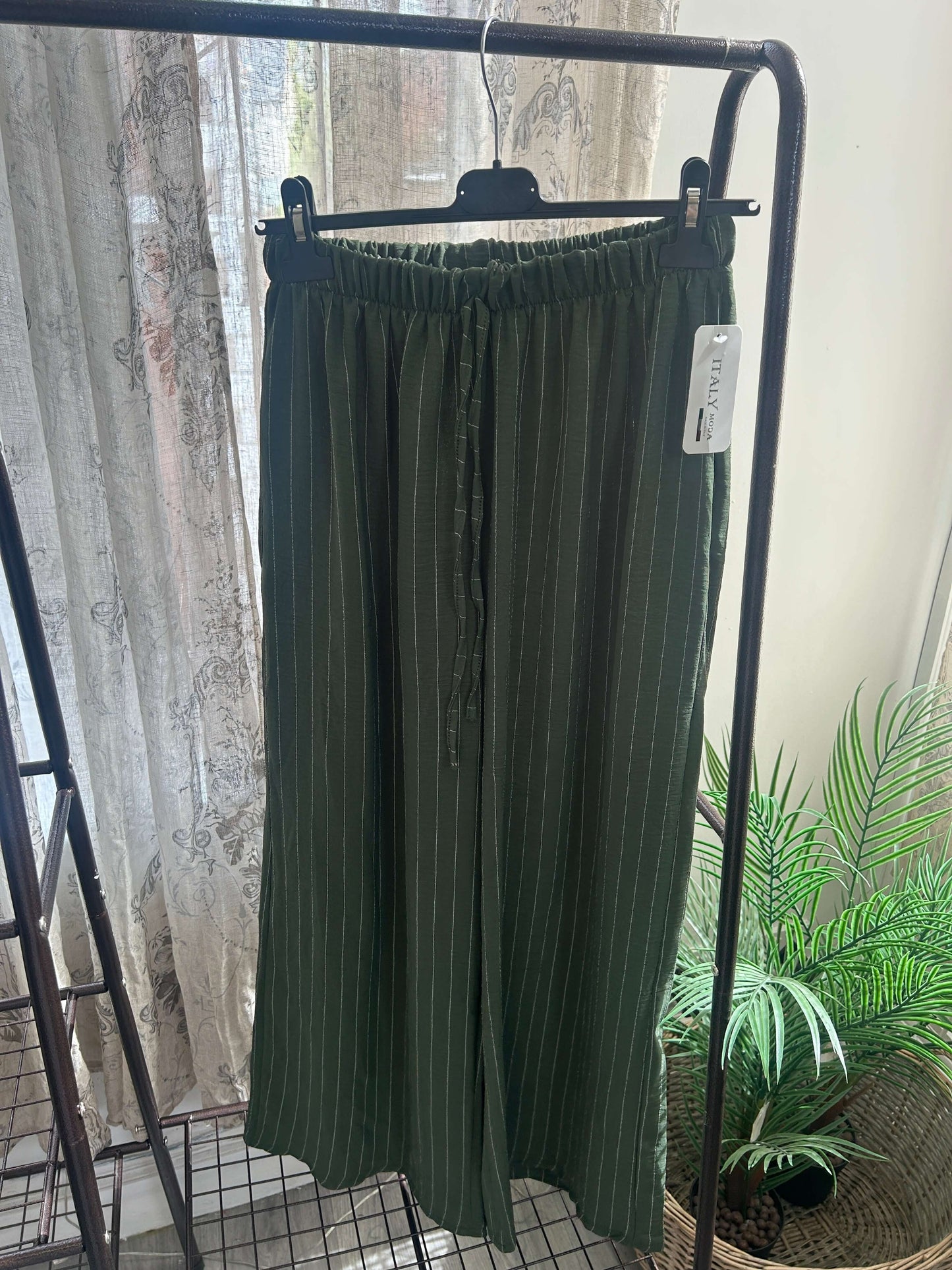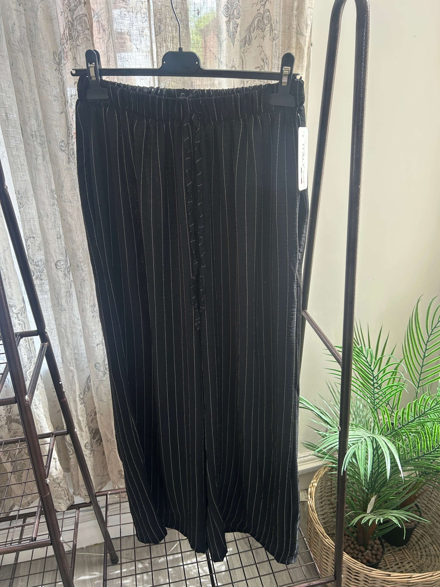 These Striped Elegant Wide Leg Trousers feature a timeless stripe pattern and are made with lightweight fabric, ensuring both style and comfort. Perfect for any occasion, these trousers add a touch of elegance to any outfit. Expertly crafted for a sophisticated look.