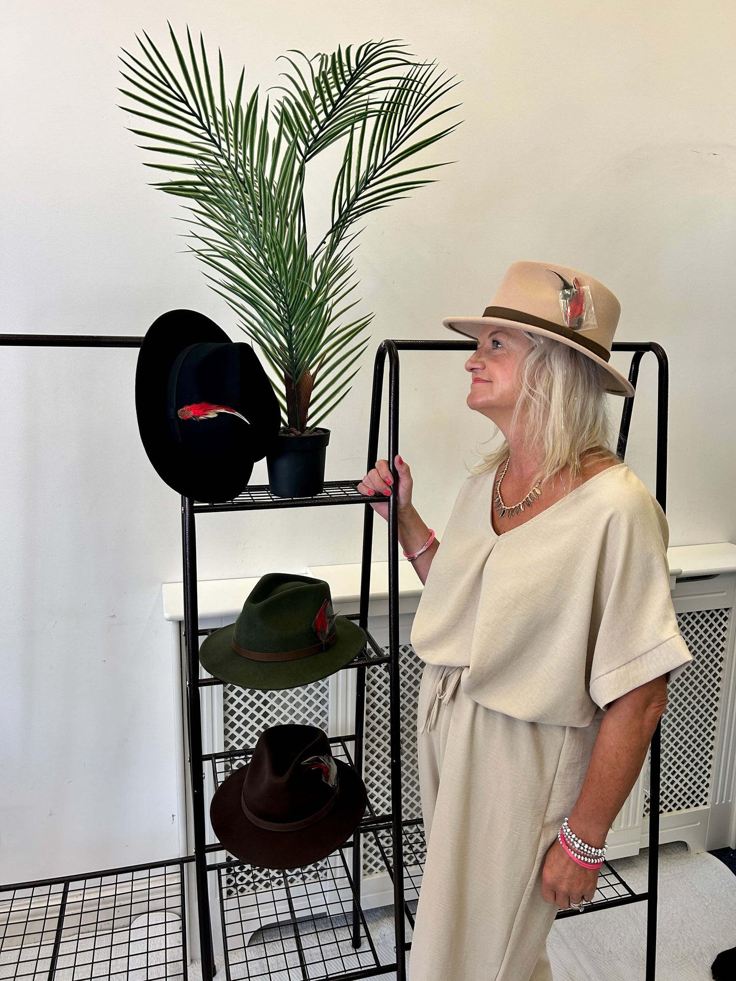 Top off your look with this sophisticated Structured Fedora with Feather Detail. Crafted with structural integrity and style in mind, this classic fedora features a faux leather band with a hint of feather detail. Stylish and practical, it's the perfect piece for any occasion.