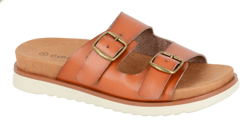 Tan Twin Buckle Strap Mule Sandal - 'Tiberia'