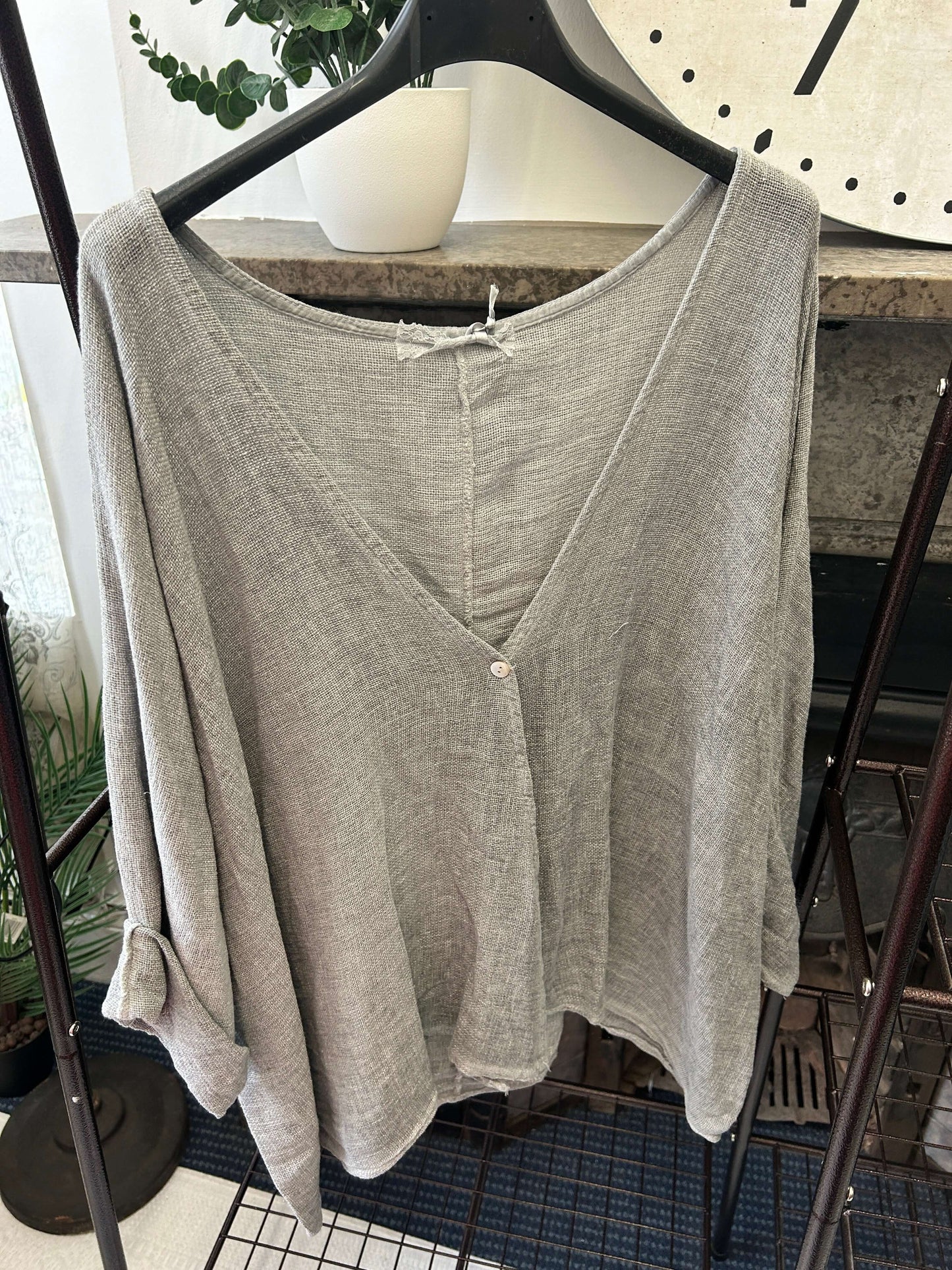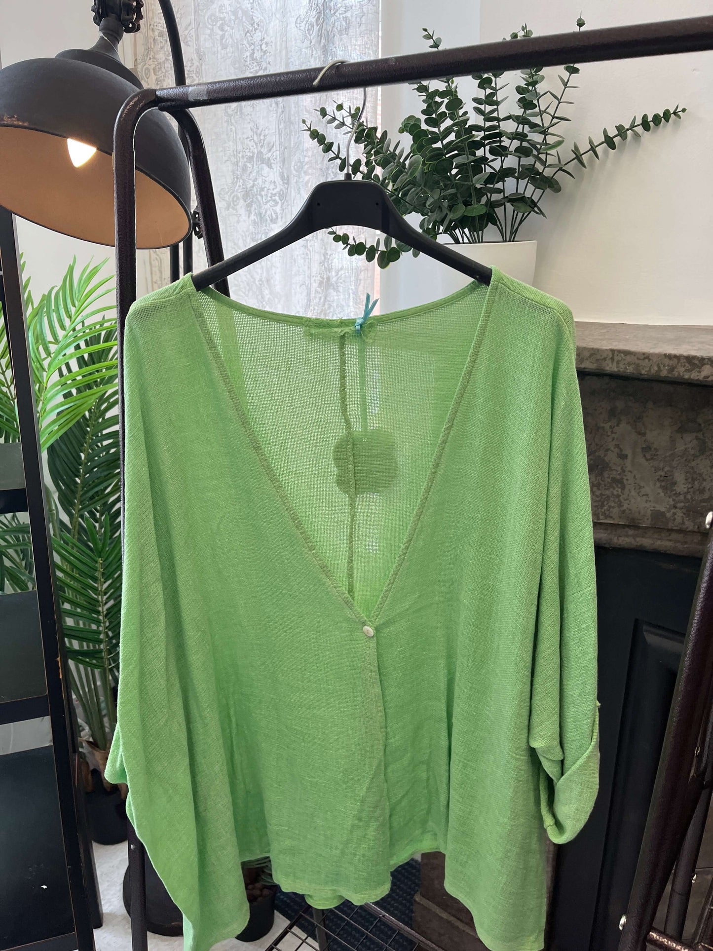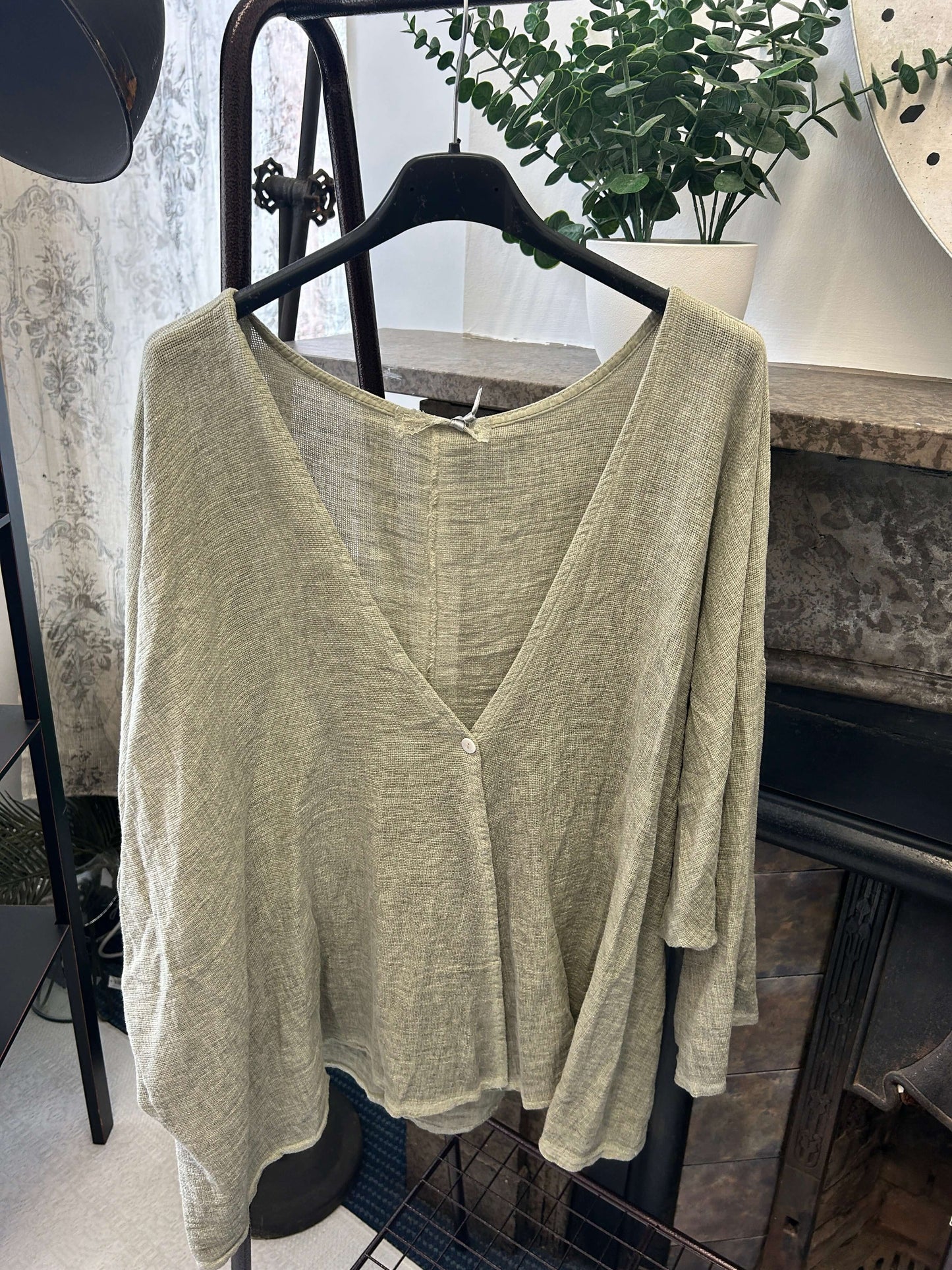 This luxe linen top features a gorgeous, floaty fit, perfect for any occasion. The one-button crossover detail adds a hint of sophistication to your look. Enjoy the perfect combination of comfort and style with this timeless piece.