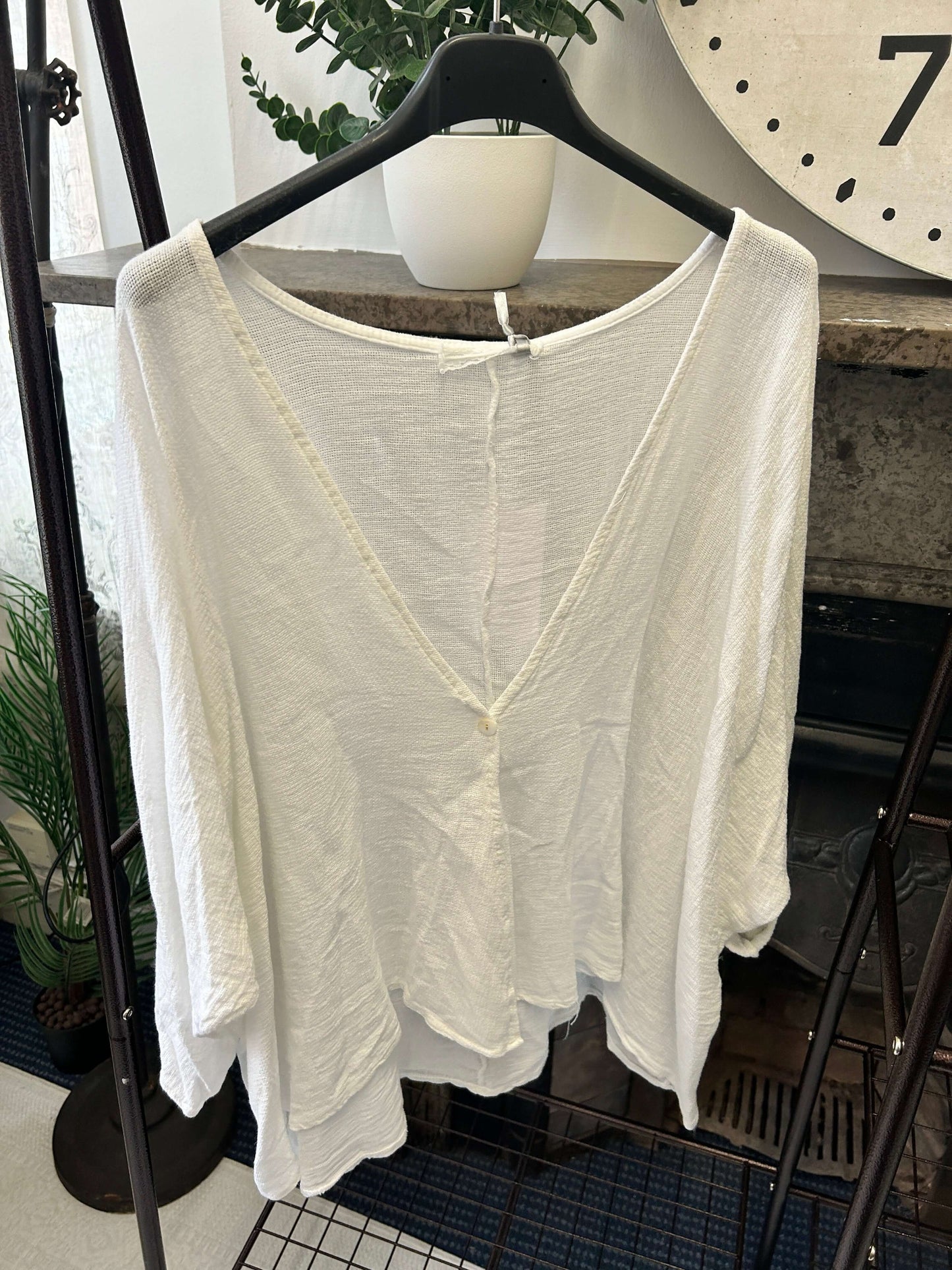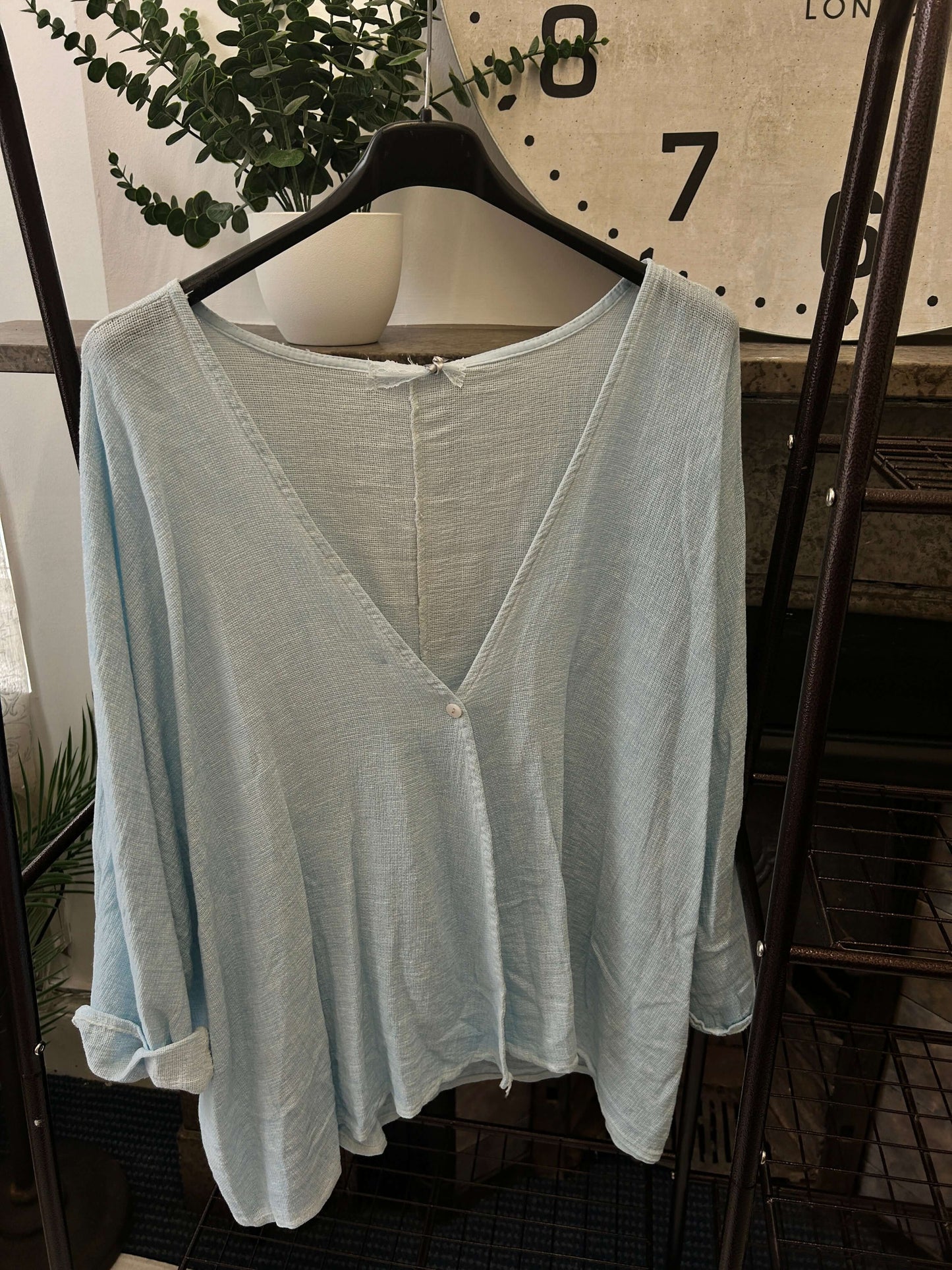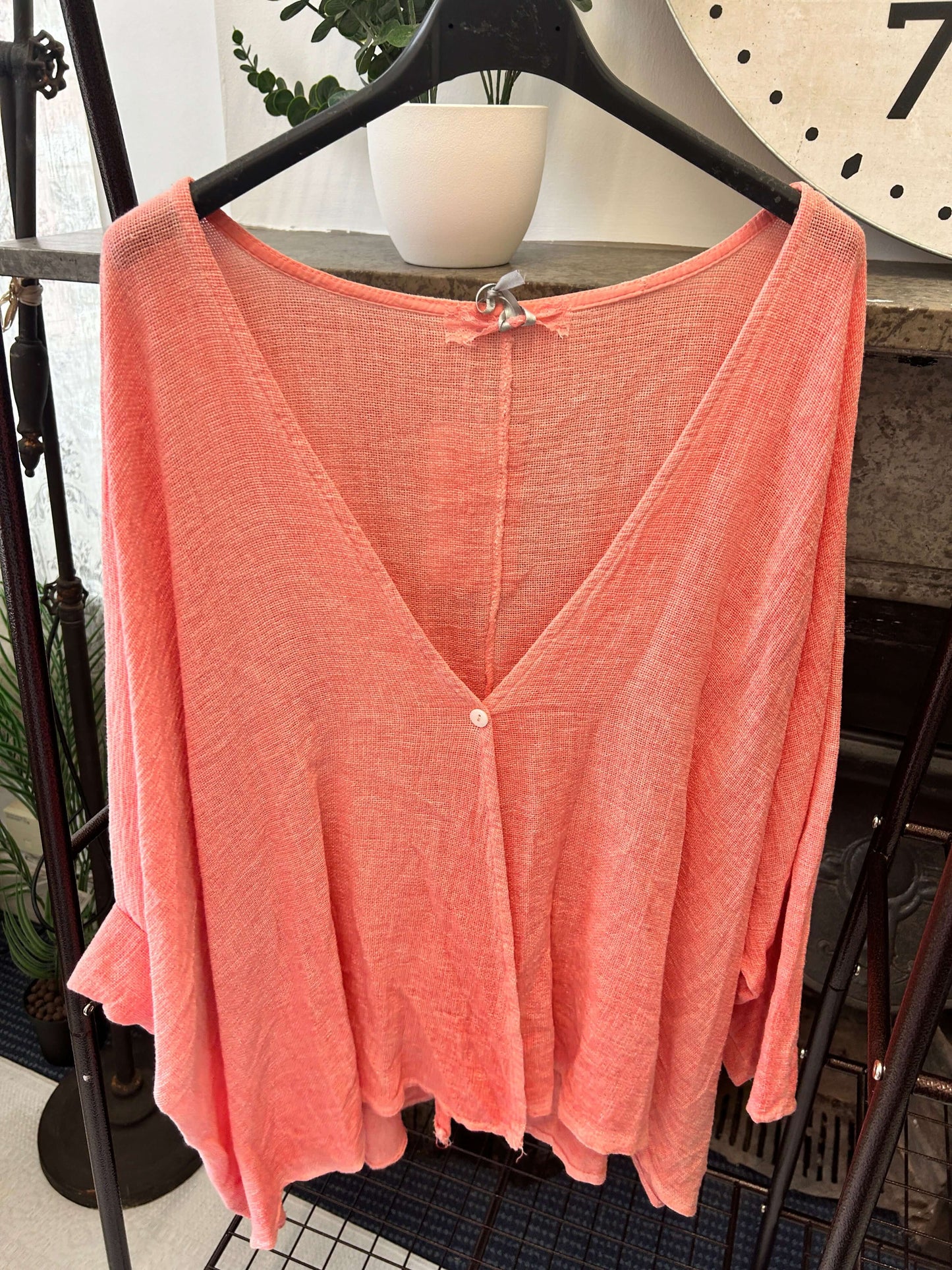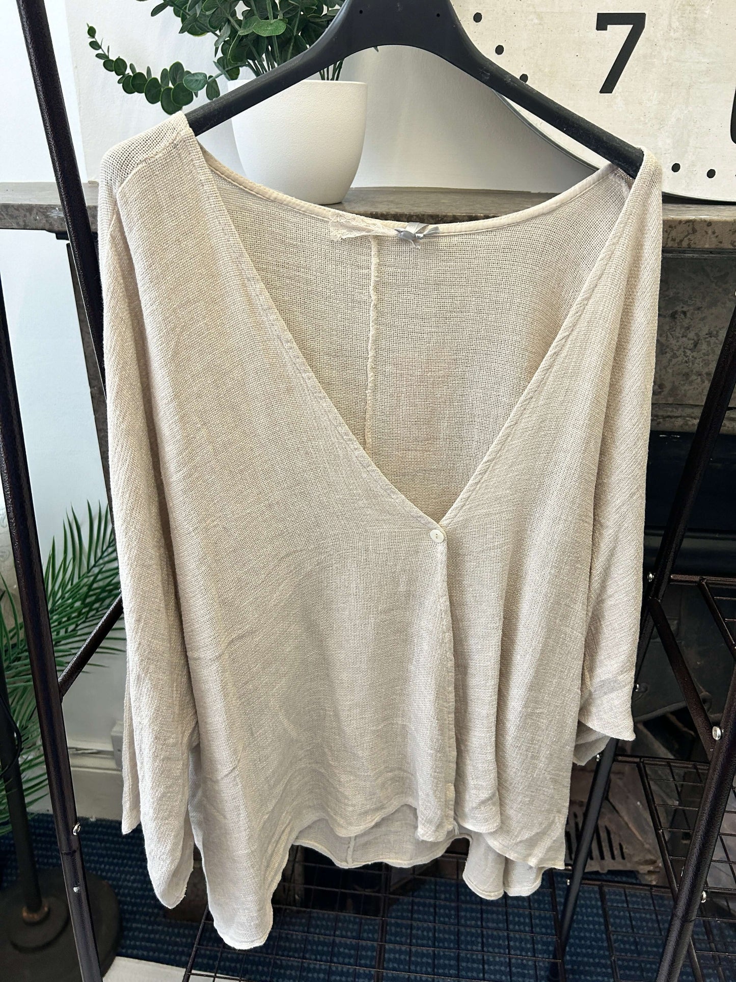 This luxe linen top features a gorgeous, floaty fit, perfect for any occasion. The one-button crossover detail adds a hint of sophistication to your look. Enjoy the perfect combination of comfort and style with this timeless piece.