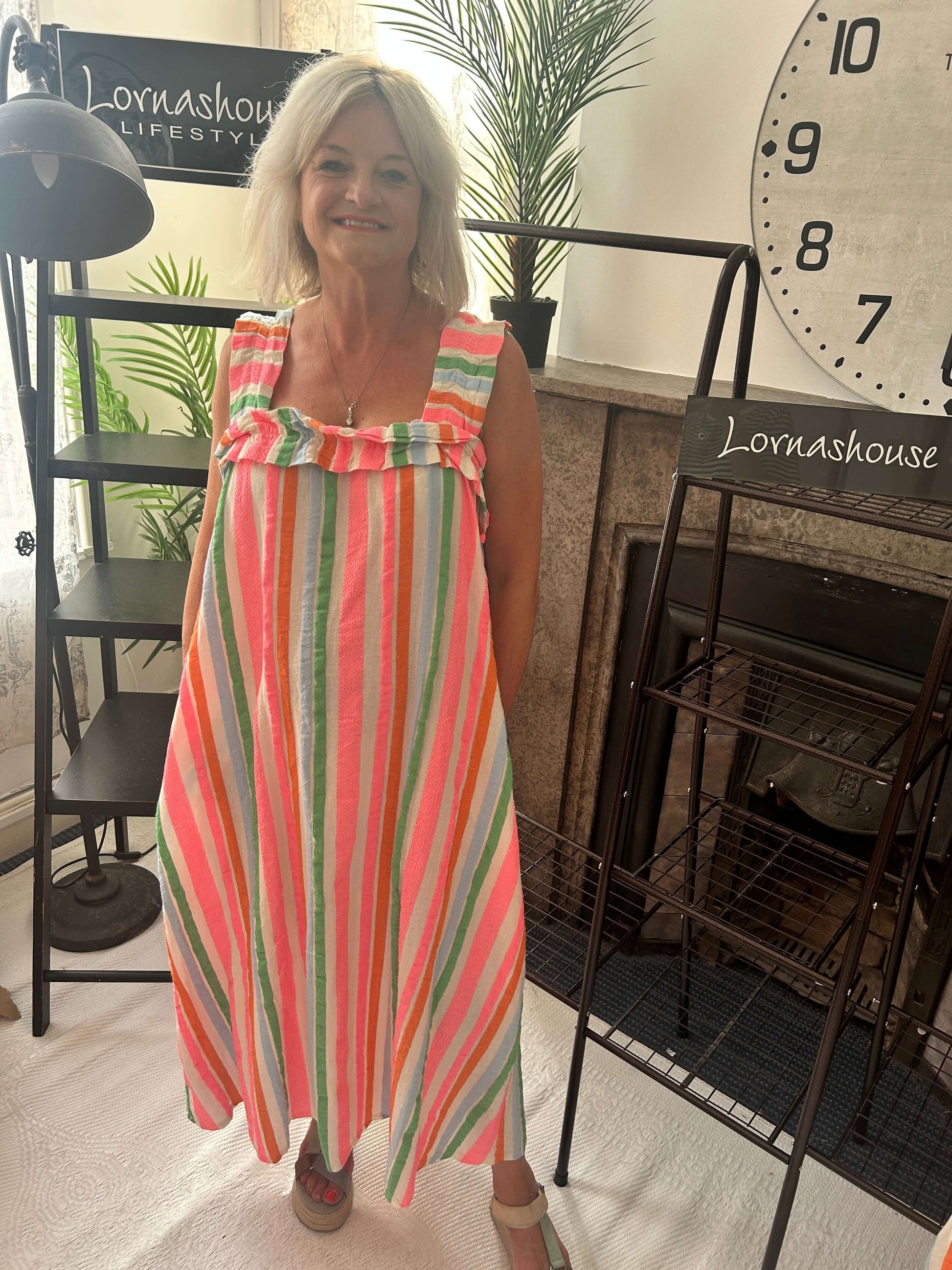 Viviana Stripe Frill Detail Maxi Sundress